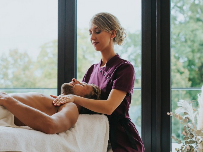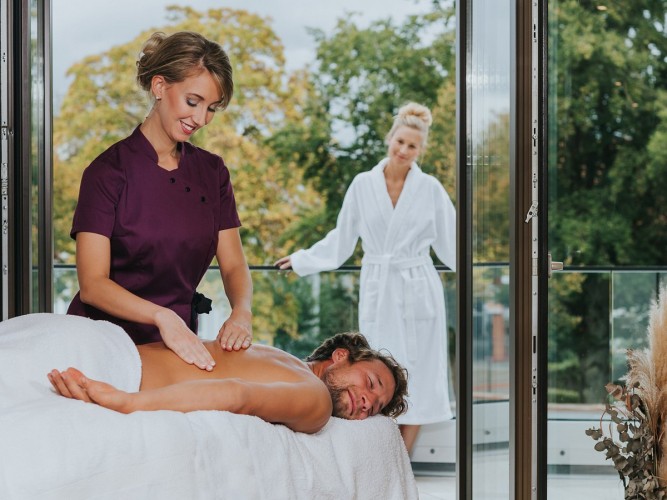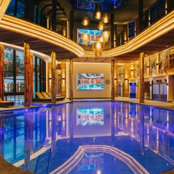 Der 4.400 m² große Wellness- & Spa-Bereich bietet ein exklusives Ambiente für deine persönliche Auszeit: Erwarte eine großzügige Saunalandschaft mit verschiedenen Saunen (z. B. Eventsauna, Salzstein-Sauna, Bio-Sauna), mehrere stilvolle Ruheräume, Private Spa Suiten sowie ein umfassendes Angebot an Massage‑ und Beautybehandlungen.