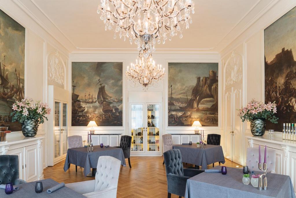 Doppelzimmer und Suiten sind ab ca. 340 € pro Person und Nacht buchbar, Einzelbelegung ab ca. 390 € – jeweils inklusive Frühstück und Zugang zur Schlosstherme.